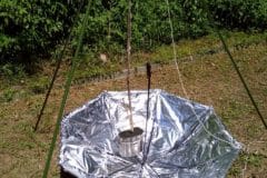 今回の立ちかまどは、ローインパクトの観点から資源を無駄にしない工夫として、一斗缶を半分にしたものをファイアベースに使用しました。これが反射炉にもなって、思った以上に火の回りもよく、熱効率もバッチリ。みんな「おぉ〜!」と感心しながら取り組んでいました。本番のキャンポリーでもこの方法を使うことに決定です。いつもなら土を採ってきて乗せないといけないので、このやり方はとても楽でした。